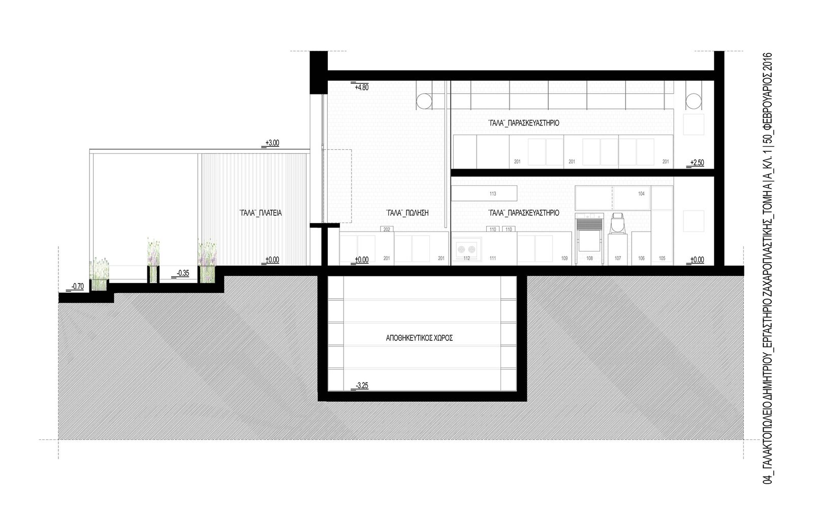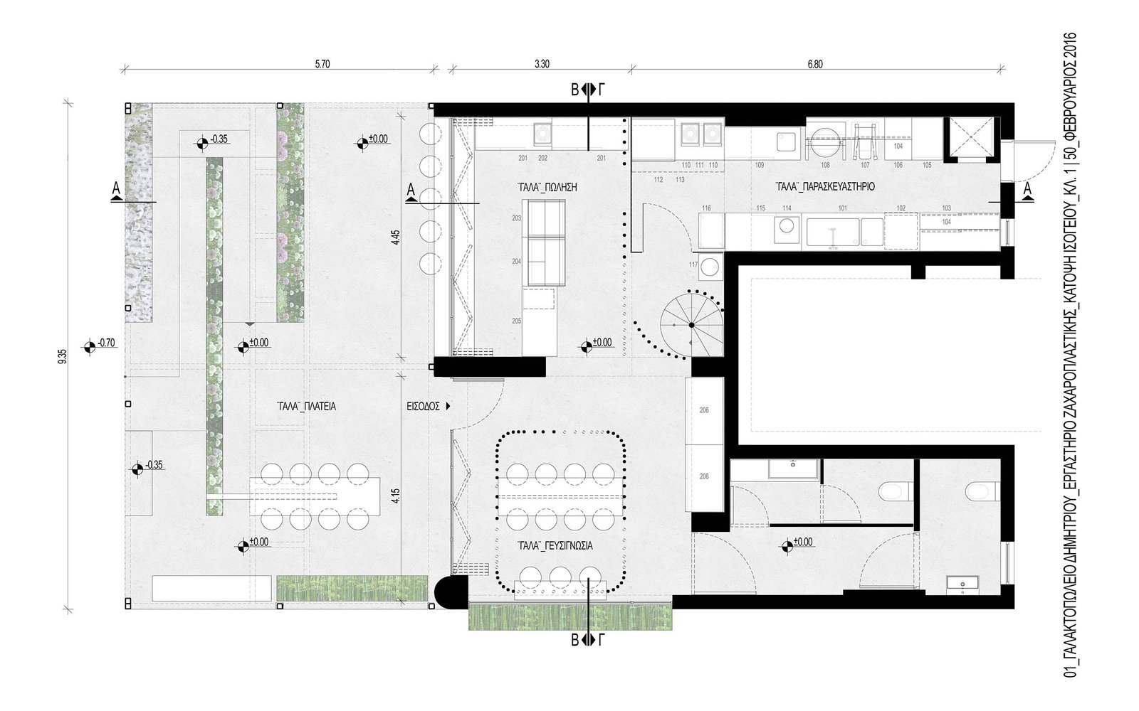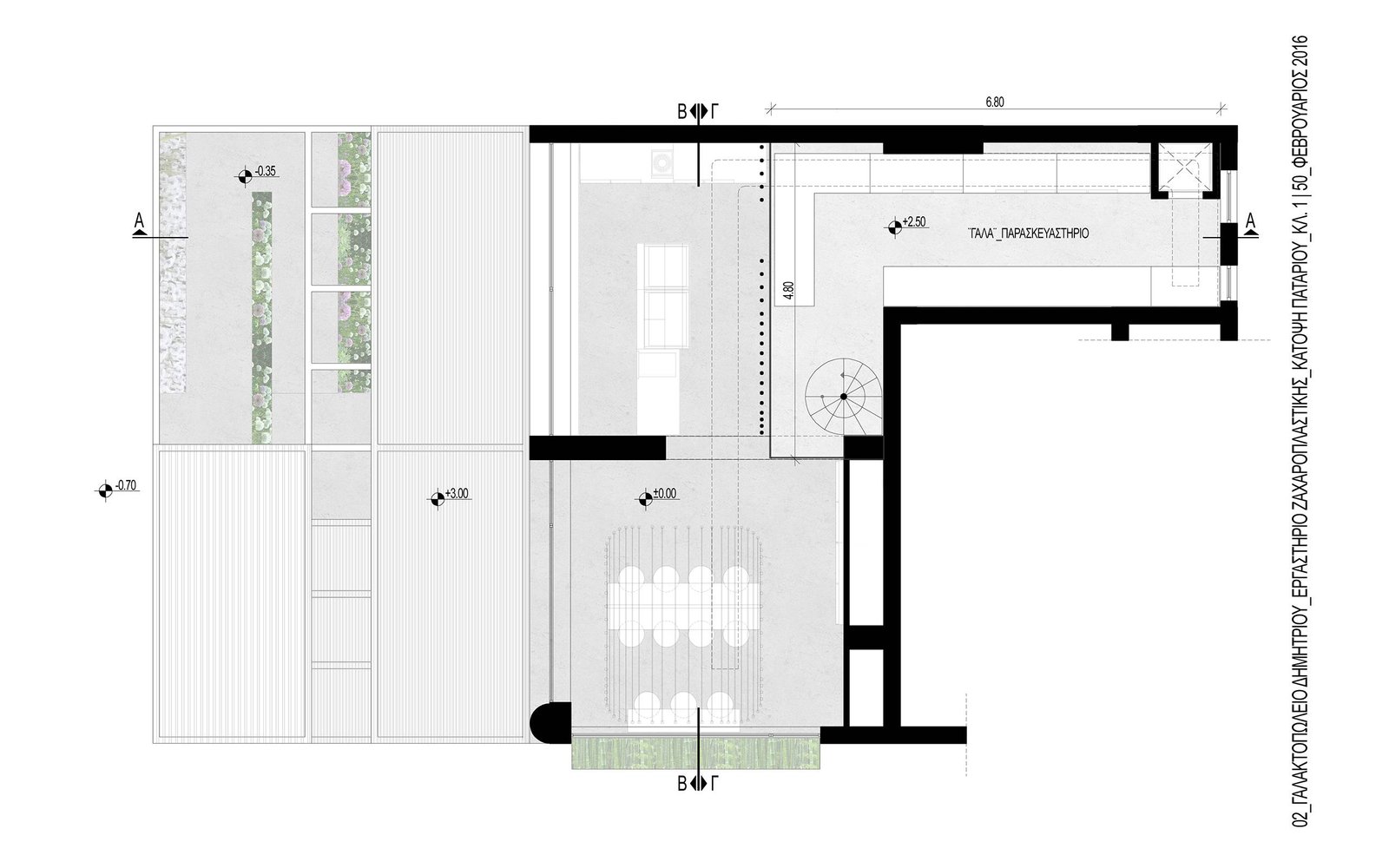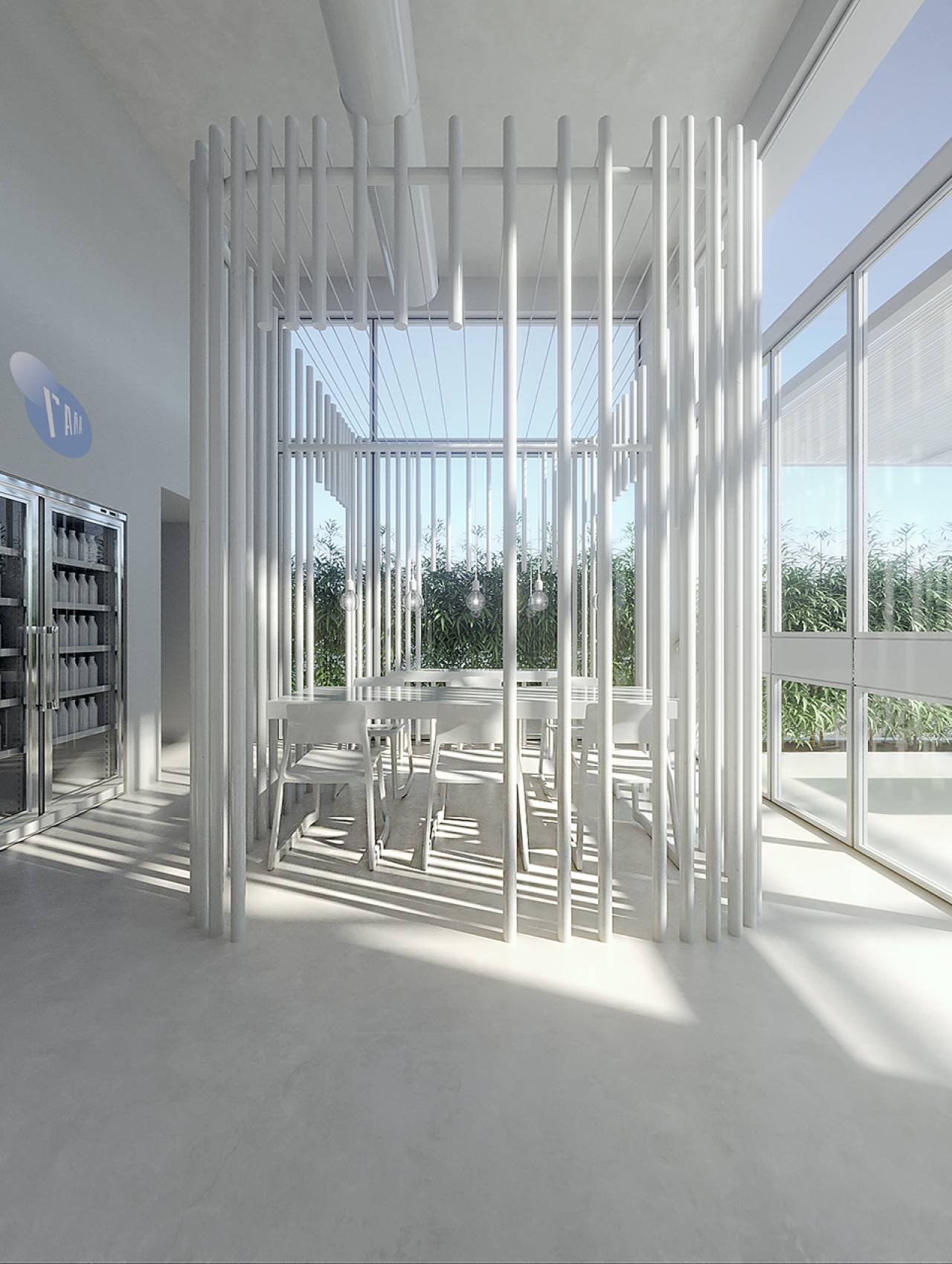 The place is designed to provide the customer with a range of daily made dairy products that could be observed, tasted, and bought, thus transferring the everyday commodity to another level of experience.
